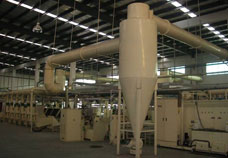 多管旋風(fēng)除塵器結(jié)構(gòu)簡(jiǎn)單,操作維護(hù)方便,價(jià)格較低,但對(duì)500微米以下粉塵處理較弱,致使排放,環(huán)保不能達(dá)標(biāo)。我們結(jié)合破碎機(jī)粉塵特點(diǎn),研制出新型旋風(fēng)+袋除塵器組合體能地捕集微細(xì)粉塵,可滿足環(huán)保要求。它投資較低,有時(shí)需要換濾袋,由于破碎作業(yè)中不連續(xù),粉塵對(duì)濾袋影響較小,濾袋使用壽命長(zhǎng),選用石料破碎、篩分除塵器是理想的。多管旋風(fēng)除塵器設(shè)有反吹清灰機(jī)構(gòu),與脈沖除塵器比較省去了空氣壓縮機(jī)的費(fèi)用,所以也降低了除塵器的造價(jià),除塵布袋裝在除塵器頂部,利用減速機(jī)構(gòu)帶動(dòng)反吹風(fēng)管旋動(dòng),然后高壓空氣通過(guò)反吹風(fēng)管吹入布袋,氣流使除塵布袋產(chǎn)生振動(dòng)達(dá)到清灰的目的,此清灰機(jī)構(gòu),降低了由高壓空氣脈沖閥膜片清灰的袋籠與濾袋之間的磨損。多管旋風(fēng)除塵器采用旋風(fēng)筒流型殼體,有較高的除塵效率。